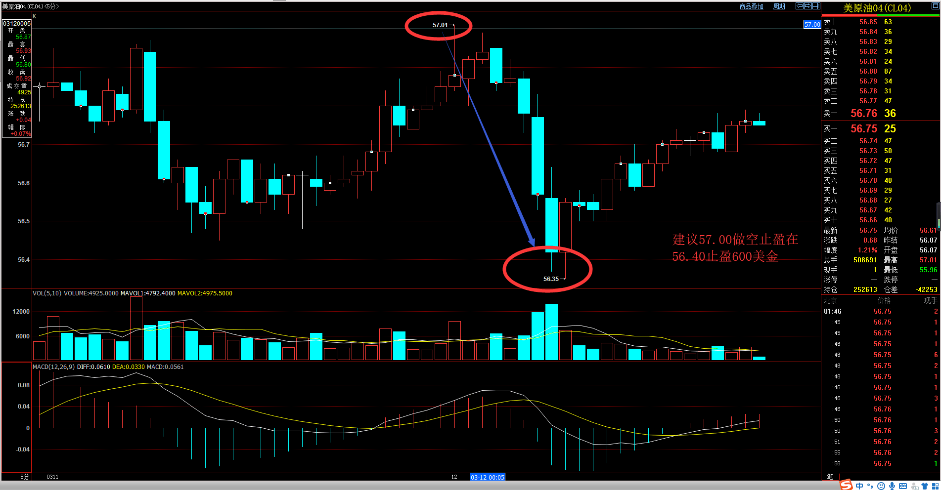 注意原油日内已经止盈一波大家早些休息:日内建议的57.00-57.20的空单完美止盈在56.40单手获利600美金!老陈在线指导需要跟单联系我即可