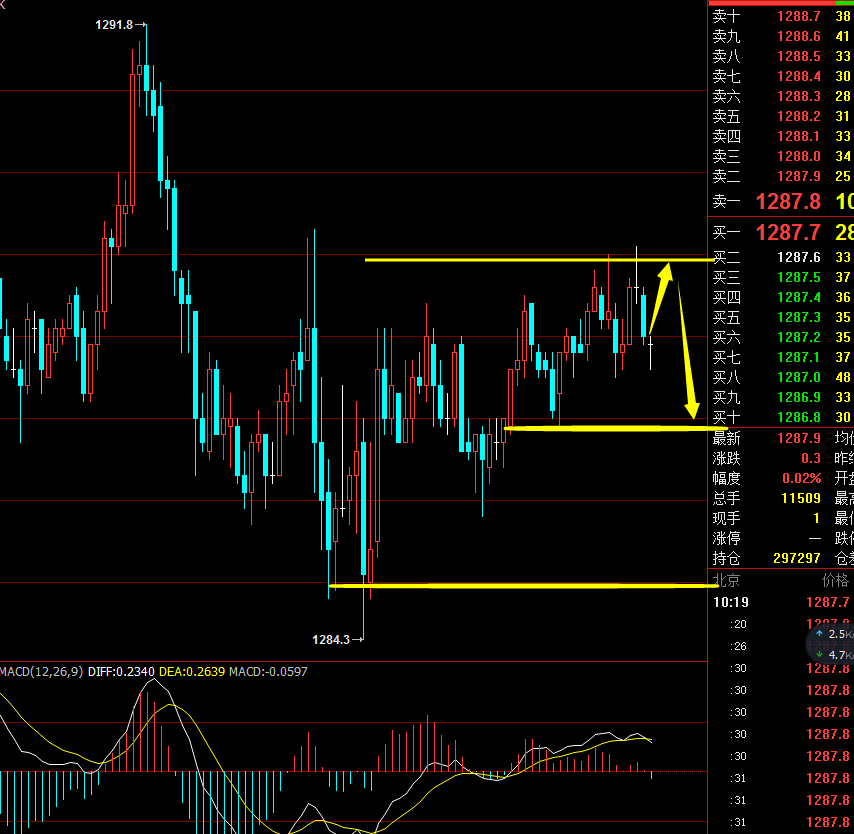 美黄金1904合约操作建议: 技术面,黄金连续两个交易的弱势整理,上下1282/1292美元关口支阻很关键,若是继续下破出现新低那就会加剧跌势,相反若是站稳该阻力之上,起码从整个修复的过程来看跌势将缓,或许在非农之前测试千三亦是有可能,关键在于其反弹的力度。而四小线的弱势整理之后逐渐企稳在MA5/MA10均线之上,弱势之中的反弹有望延伸,如不能突破1292美元关口的话,金价依然会承压转而下行,而该位置也就是今天关注的重点突破口。 昨日金价跌至逾五周来最低,因经济数据强于预期,且美国公债收益率上扬推高美元,全球股市保持在近五个月高位。从技术面来看昨天开盘在1286附近后行情先小幅拉升给出1291.8一线后行情承压回落,最低给到了1284.3的位置后行情开始区间反弹,日线最终收取一根阳十字星。综合来看,今日操作建议反弹高空为主,回调做多为辅,上方重点关注1290-1292一线阻力,下方关注1282-1284一线支撑。 美黄金1904合约操作建议: 1.上方反弹至1290-1291一线做空,止损3美金,目标看1286-1283; 2.下方回调至1283-1285一线做多,止损3美金,目标看1287-1291; 个人观点只作为参考,不作为下单依据,具体布局点位实盘为准。 投资不要盲目,需要理智的选择,也需要有人指引,如果你迷茫。建议你找一个专业的老师指引你走的更远,站的更高!未来不迎,过往不恋! 从此刻开始,你不再是一个人在战斗,从此刻开始,你的账户有望扭亏为盈,在你漫长的投资路上,老师愿成为你黑夜中的一盏灯塔,带你走出迷茫和黑夜! 本人联系方式微信: LOVY9688 期货金师