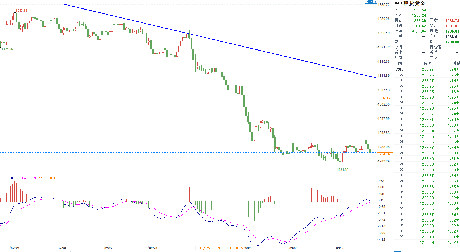 黄金1290的顺势空单现价1286.7全部减仓设置保本损,目前单手获利330美金
