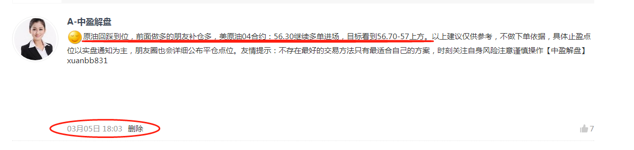 观点16:36分给出原油56附近多,目标行情已到56.60上方,盈利超过50个点(一手赚500美金)继续持有上看!恭喜跟上操作的实盘朋友!需要带单或者想解套的朋友添加定格解金dg2008168