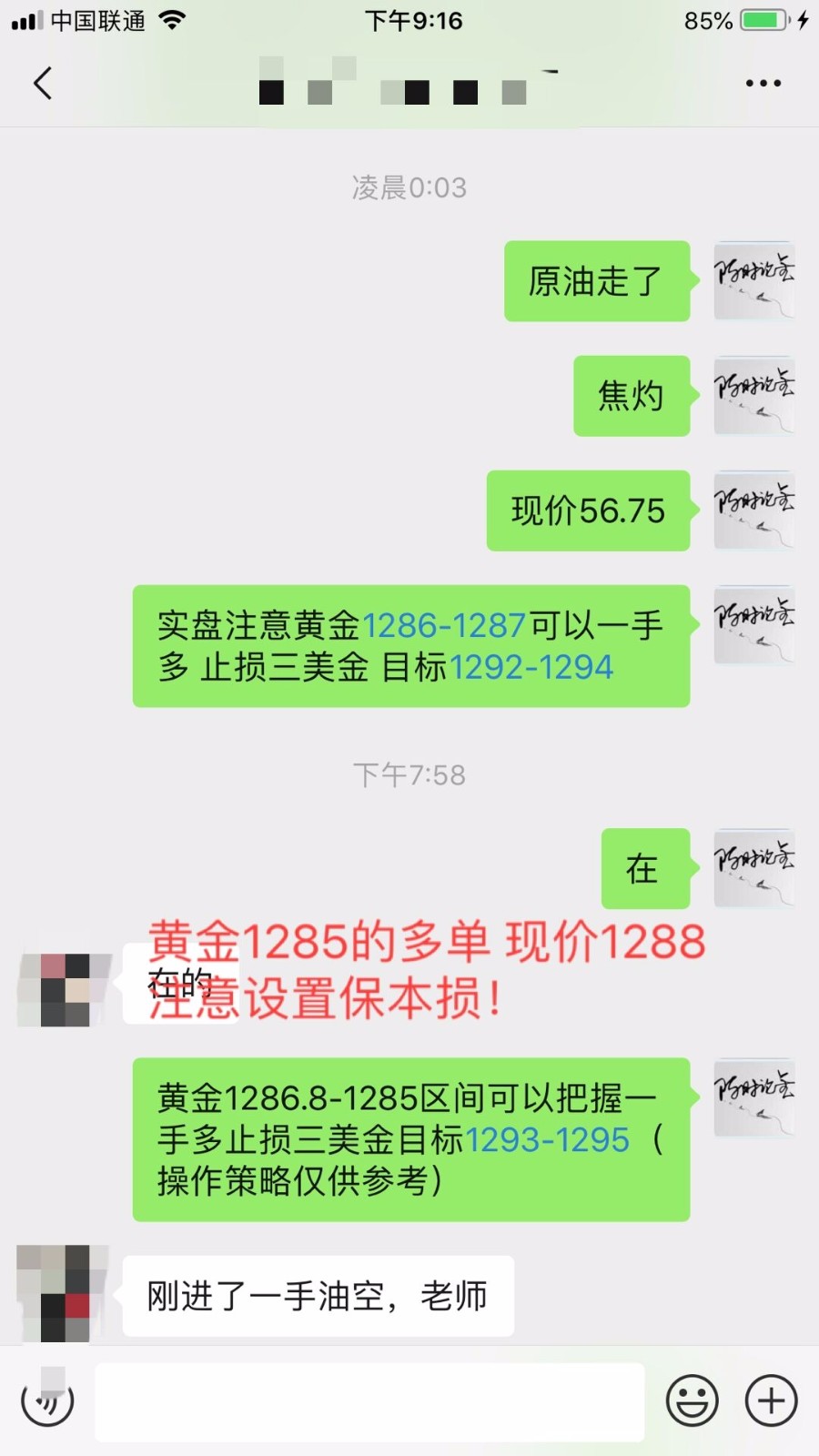 黄金按照我的建议1285做多的朋友现价1288注意减仓设置保本损!