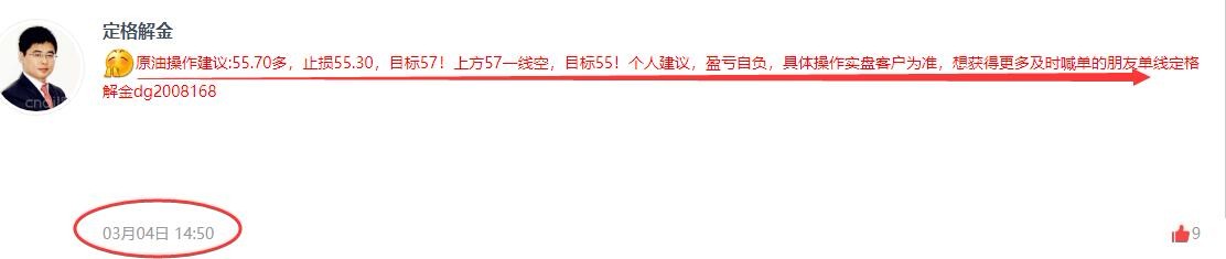 原油操作建议:55.70多,止损55.30,目标57!上方57一线空,目标55!个人建议,盈亏自负,具体操作实盘客户为准,想获得更多及时喊单的朋友单线定格解金dg2008168