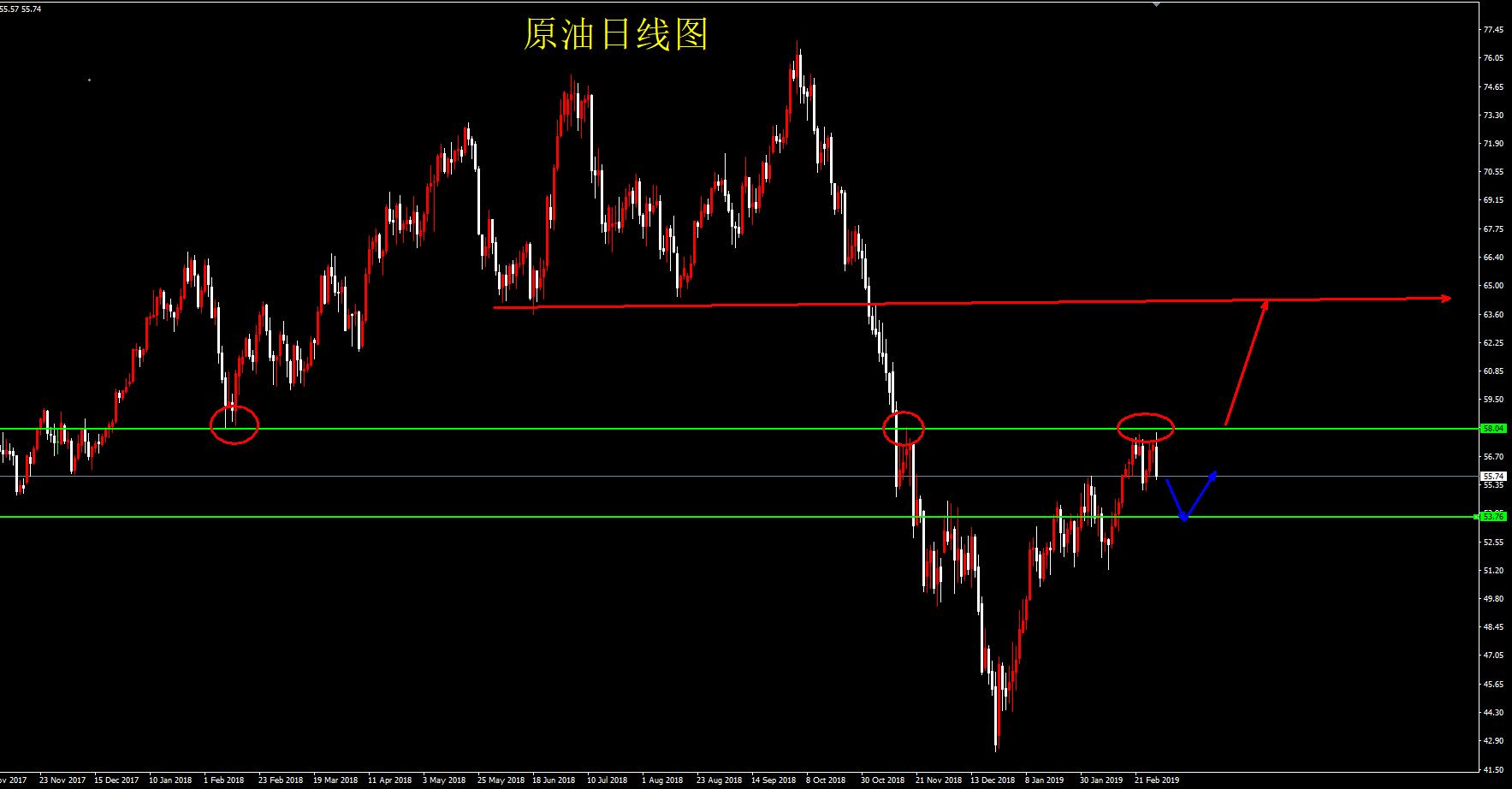 原油走势解析——上周分析以及讲课的时候我们一直强调原油上方58位置是一个非常强的阻力关口,原油不能突破站稳58位置就看不到上升空间。周五原油高位受阻跳水下跌,周线最终在55.7位置以阴线报收。从日线来看原油上方58一线已经构成平台型阻力,加上原油在周线以及日线上均以阴线报收,下周油价有望继续下挫看黄金分割线回调比例位61.8%即54附近。原油中期趋势还是看涨,短期受阻回落蓄力后市继续关注能否冲破58关口,当油价站稳58一线,那么油价中期目标看看到63位置。