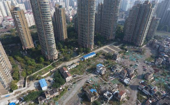 上海普陀区光复里社区,一片垃圾堆般的废墟中零散伫立...